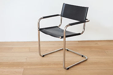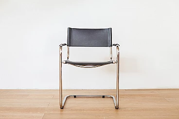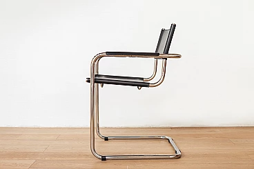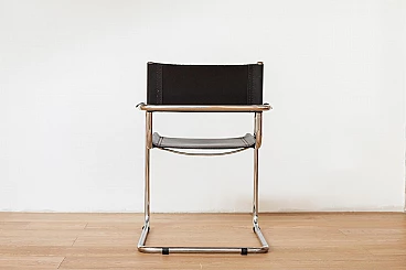 Chromed metal and black leather cantilever chair by Mart Stam, 70s