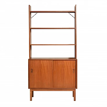 Bookcase with shelves and cabinet, '50s/'60s Original vintage furniture of Scandinavian origin, formed by two parts. The upper part is a bookcase with adjustable height shelves, the lower part is a cabinet with a compartment with sliding doors. The interior is yellow, original vintage. An original and functional piece of furniture that can be used with or without the shelving. Ideal for small rooms without sacrificing a unique decor and character.