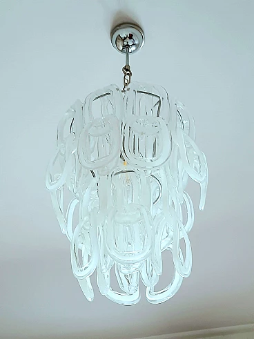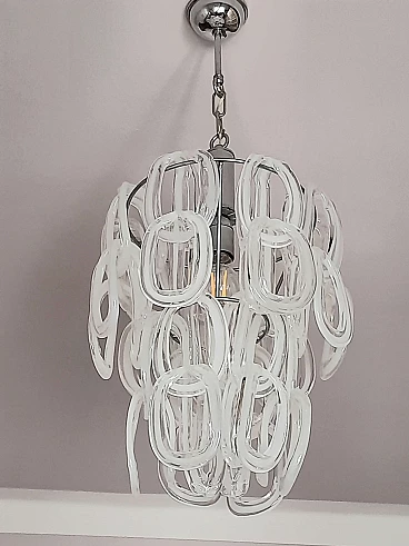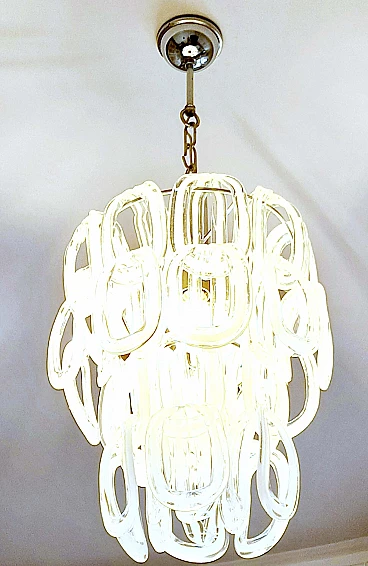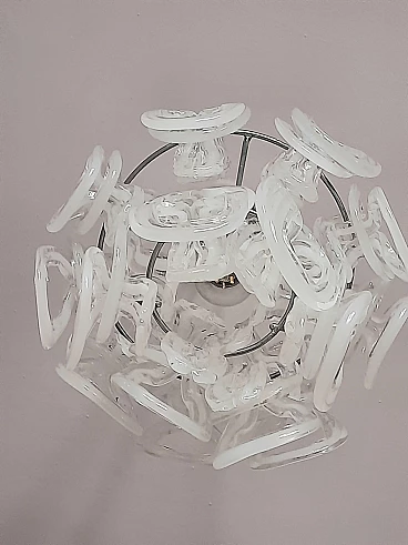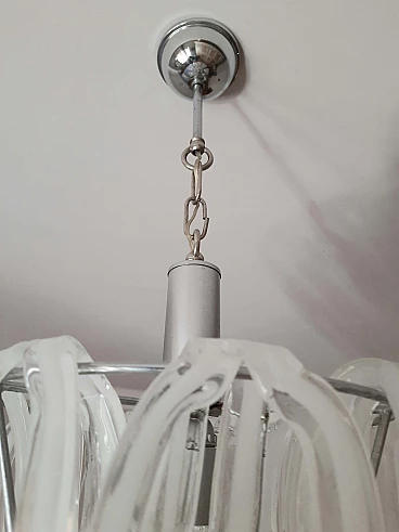 Chandelier in Murano glass and chromed metal by Angelo Mangiarotti for Seguso, 70s