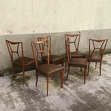 6 Chairs in the style of Paolo Buffa in walnut, skai and brass, 50s