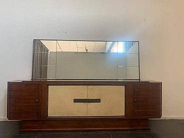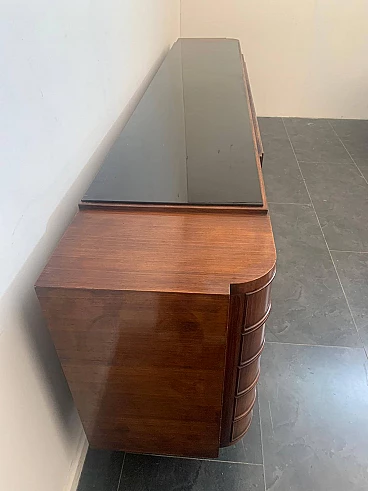 Art Deco sideboard in rosewood and parchment with black glass top, 1930s