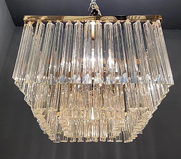 Large Murano glass chandelier with prisms, 1970. Handmade clear prisms in Murano glass. Each prism may vary slightly in size and width as they are handmade. Restored polished brass frame. Features 5 lights Requires 5 E27 screw-in bulbs. Price is for one. We have 4 identical chandeliers available. New wiring installed compatible with UK, Europe, USA. Shipping in a wooden crate for safe arrival