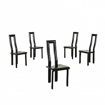 Group Of Five Chairs Ycami Metal Leather 1980s 1990s