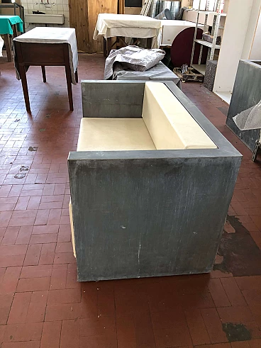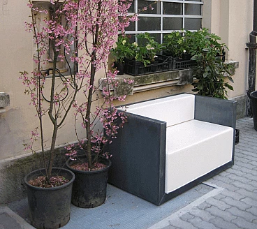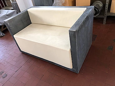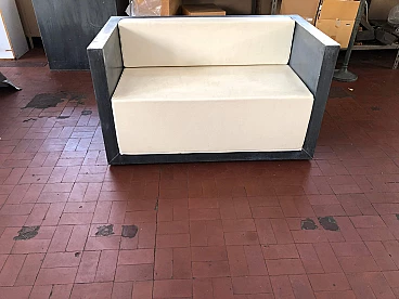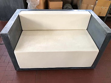 Outdoor sofa in galvanised sheet metal and faux leather cushions, 2000s