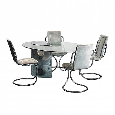 Lunario table by Cini Boeri for Knoll International and 4 tubular metal chairs, 1970s
