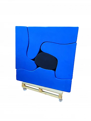 Malitte is a seating system, an ever-changing composition of five polyurethane blocks. A playful collection of colored interlocking organic shapes that can be assembled into a single sculpture, a “wall” dividing the environment with its formal and conceptual presence, which, when necessary, can instantly become a complete living room: a two-seater sofa, three seats and a pouf. Malitte is included in the permanent collection of MoMA – the Museum of Modern Art in New York City.