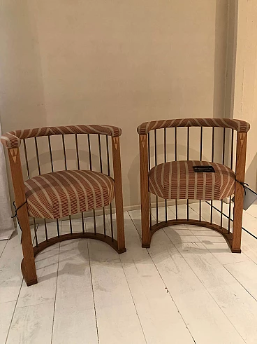 Pair of wood and fabric armchairs by Poltrona Frau, 1980s