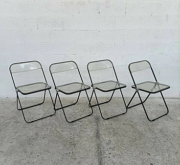 4 Plia folding chairs in metal and plastic by Giancarlo Piretti for Anonima Castelli, 70s