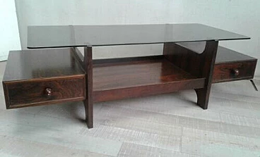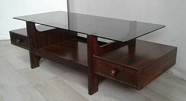 Teak coffee table with glass top, 1970s