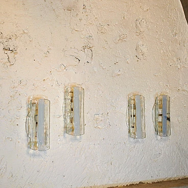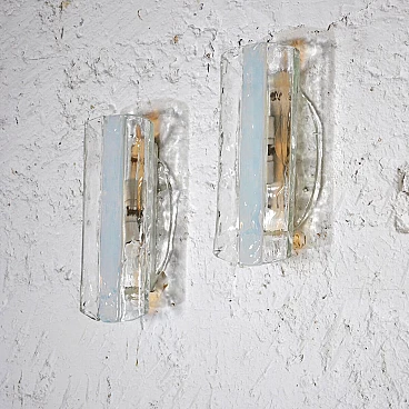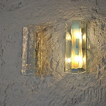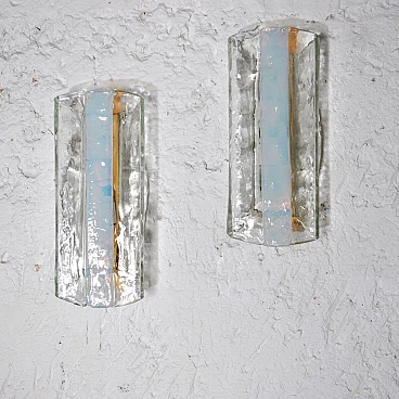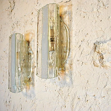 Pair of wall lamps in transparent rough Murano glass by Mazzega, 60s.