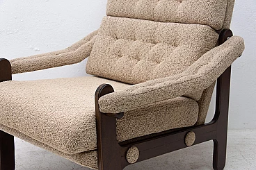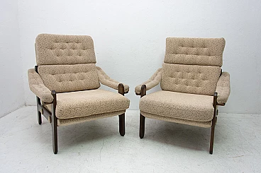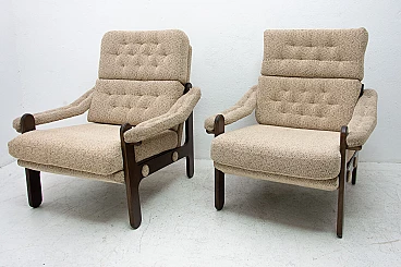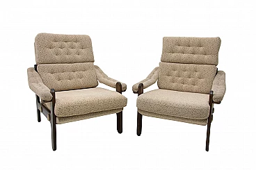 These Scandinavian style armchairs were made in the 1970s. Upholstered in fabric. The frame is made of wood. The chairs are in very good condition with no damage. The price is for the pair. Seat height: 40 cm