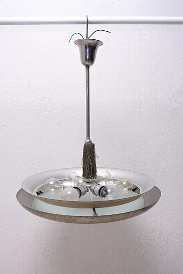 Chandelier with central frosted glass disc by Vladimír Havel, 1950s