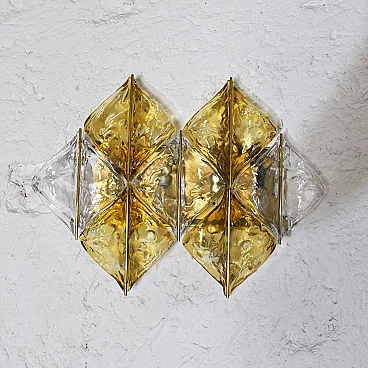 Pair of wall lamps in amber Murano glass and brass by Mazzega, 60s