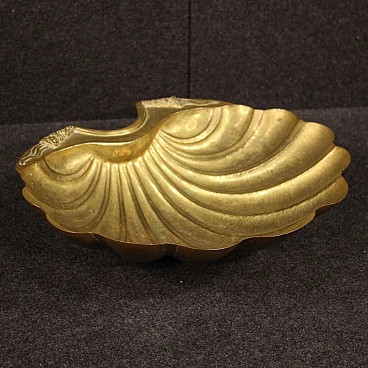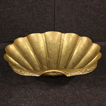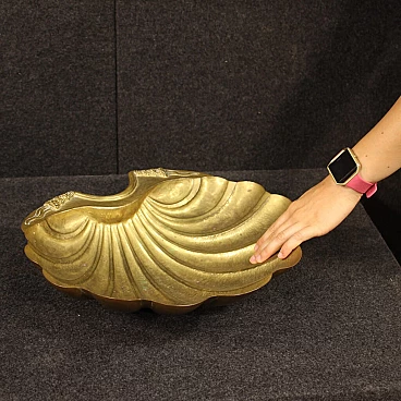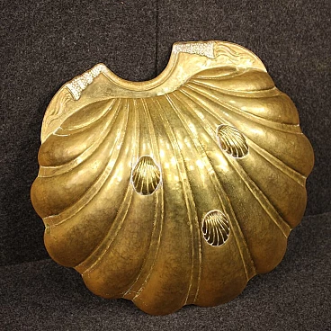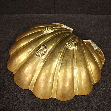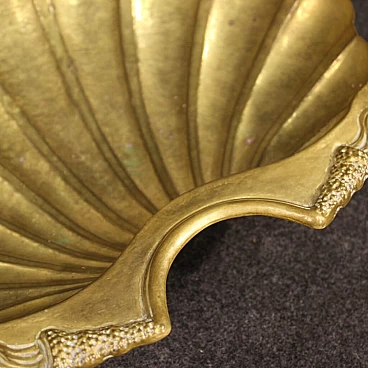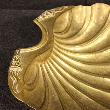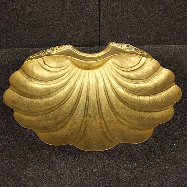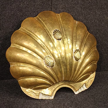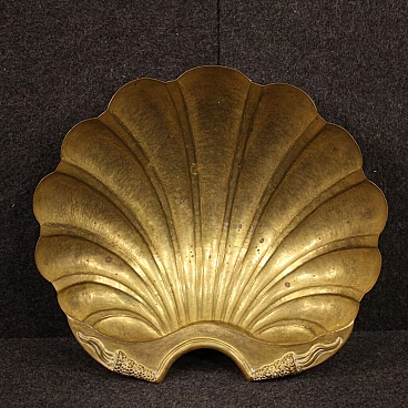 Italian object holder of the first half of the twentieth century. Bathtub in gilded and chiseled brass in the shape of a large shell of pleasant decoration. Object that can be used as a pocket or table centre emptyer. Bathtub supported by three feet also in the shape of a shell (see photo). It shows small signs of wear, overall in good state of preservation and beautiful patina.