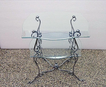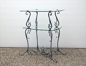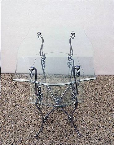 Coffee table in chromed brass and crystal, 50s