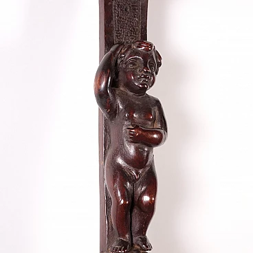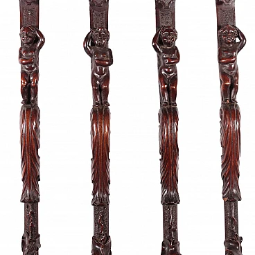 Group of four walnut pilasters finely carved with putti and plant motifs.
