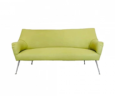 Nappa leather sofa designed and produced in the '50s. Chrome-plated metal feet and studs on the back. Restored and re-lined. The vintage object is in excellent condition, completely restored. Seat in completely restored nappa leather.