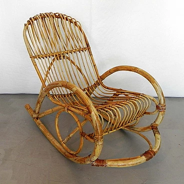 Rocking rattan armchair by Rohe Noordwolde, 1960s