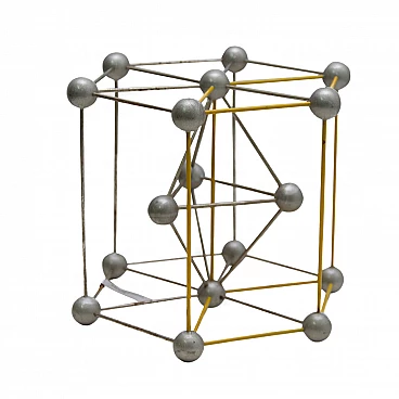 Chemistry model of a graphite crystal. This beautiful metal molecular structure from the 1950s was used in a school in Prague (Czech Republic) in the 1950s and 1960s. It is an authentic period object with great character and patina. Plastic knots, metal connectors. Made in the Czech Republic. The model is fixed and cannot be disassembled