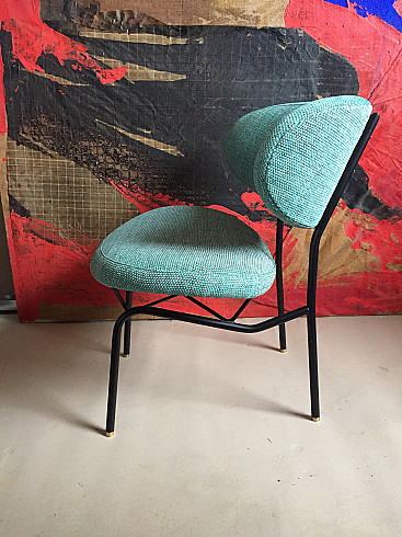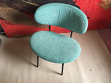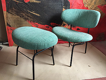 Fabric and metal armchair and pouf by Gastone Rinaldi, 1960s
