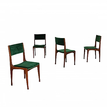 4 Chairs 693 in walnut and velvet by Carlo De Carli for Cassina, 50s. Seat height: 46cm.