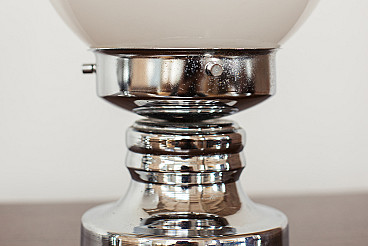 Pair of lamps in the style of Toni Zuccheri for Mazzega Murano; glass bowl with metal structure. Italian modern antique, space age 1960s, perfectly working in good vintage condition with patina. Price for the pair.