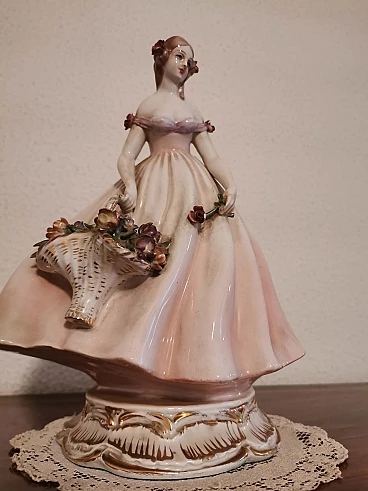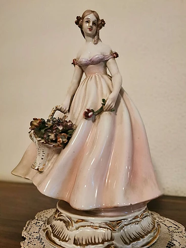 Porcelain statue of a woman with a basket of flowers, 1960s
