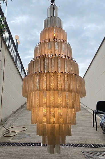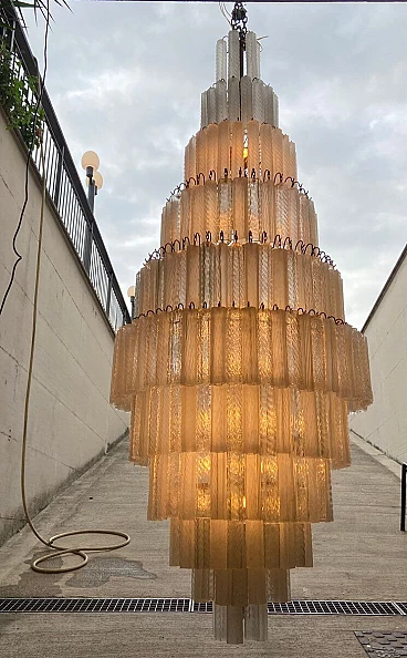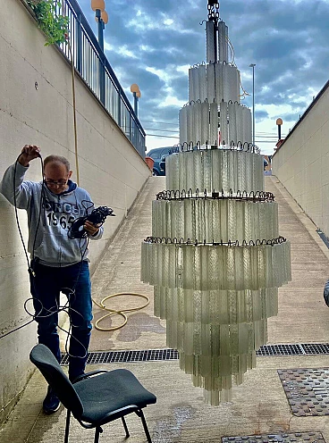 Gigantic Murano glass chandelier. Made of 313 opaque white glass tubes and transparent tubes. All tubes are in excellent condition. The gold coloured metal frame has been restored and repainted all lamp holders have been replaced with new ones. New wiring installed compatible with Europe, UK, USA. Height 2.75cm without chain and canopy. Please request chain if necessary. Features 41 lights. Requires E14 screw-in bulbs. Weight 200 kg Shipping in a wooden crate for safe arrival
