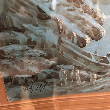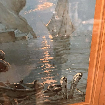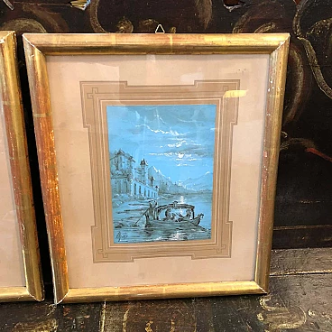 Pair of Neapolitan hand-painted gouaches with gilded wood frames, 1878