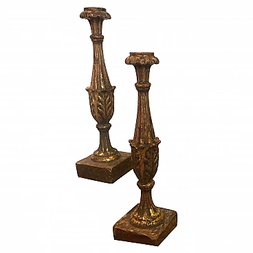 Pair of Sicilian Baroque candlesticks in giltwood, 18th century