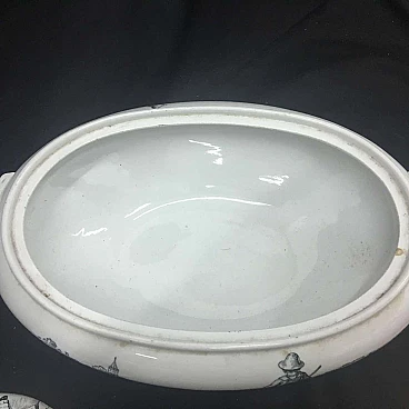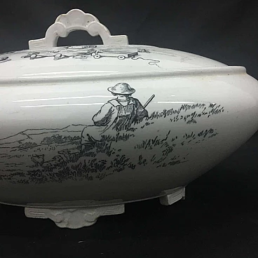 Victorian soup tureen in black and white ceramic, 19th Century