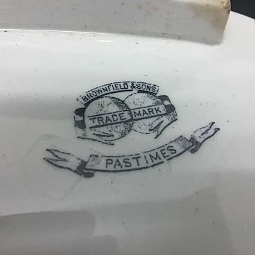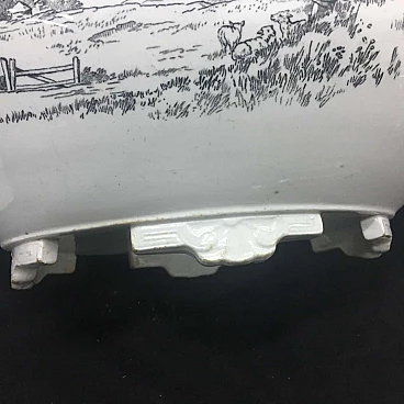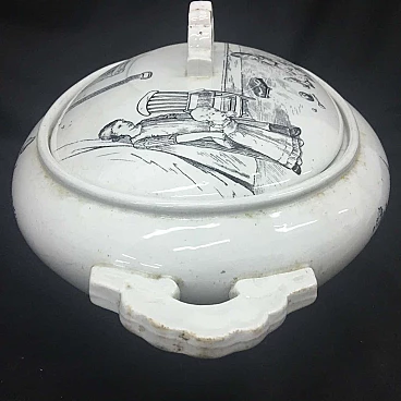 English white and black soup tureen made by Brownfield & sons, circa 1870, very particular decor with different scenes.