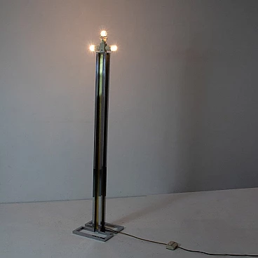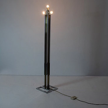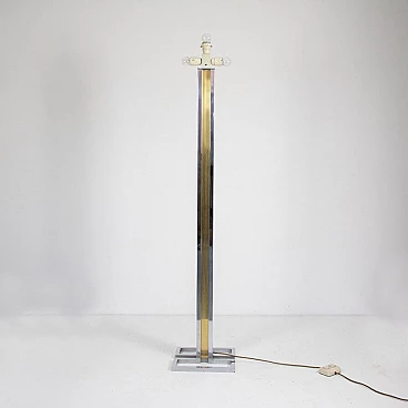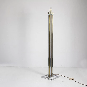 Floor lamp in chromed steel and polished brass by Romeo Rega, 70s