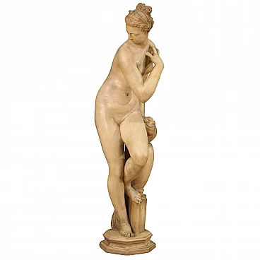 Great Tuscan sculpture of the mid-twentieth century. Object of fabulous quality production Terra di Signa stamped and numbered on the base (see photo) depicting female nude, Venus at the bath by Giambologna (Boboli Gardens, Pitti Palace, Florence). Contemporary wooden base with small hole to fit the sculpture and give it more stability. Venus in amazing patina, without cracks, missing or signs of restoration (see photo). Object for antique dealers, interior decorators and collectors of female sculptures. Terracotta of amazing decoration ideal to insert in a living room or study. Sculpture measures (without base): H 125 x W 35 x D 38 cm.