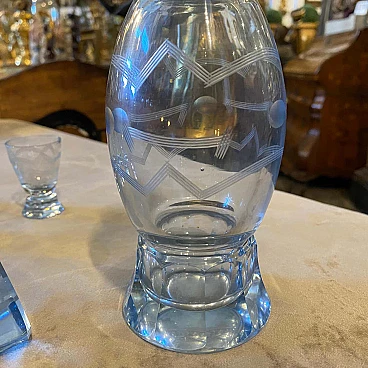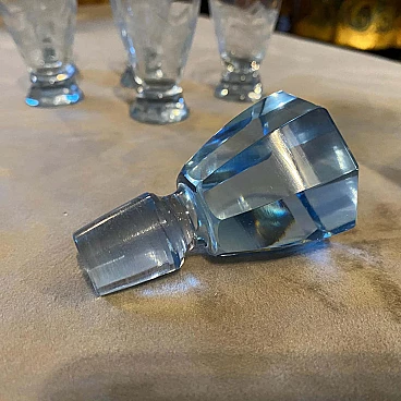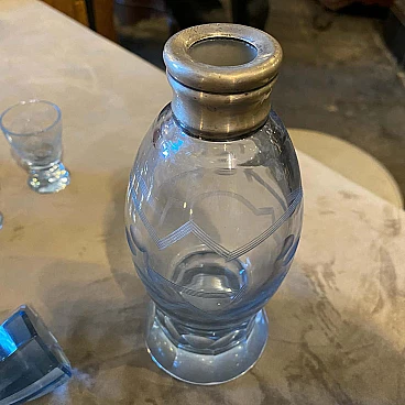 Art Deco liquor set in engraved blue glass and silver, 30s