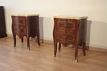 Pair of Louis XV style bedside tables in wood and briarwood, 1920s