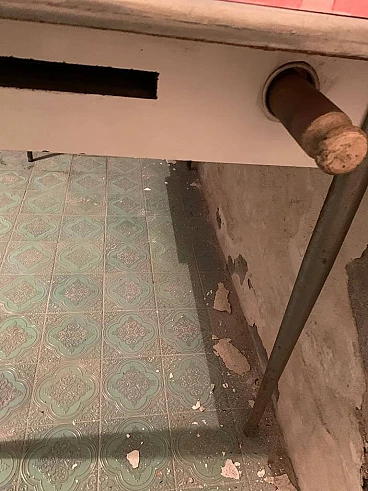 Kitchen table with built-in chopping board and rolling pin, 1950s