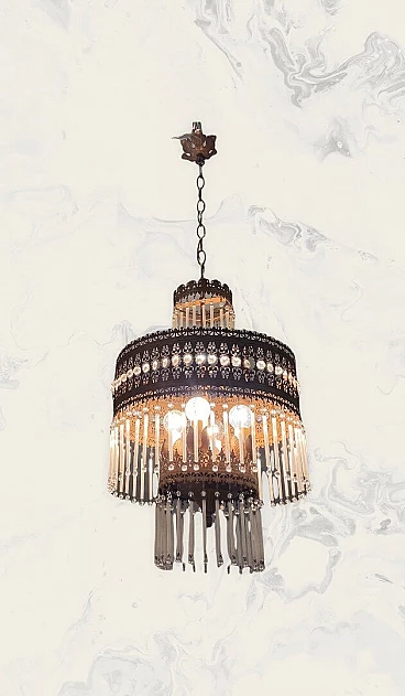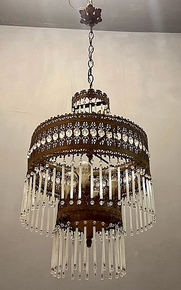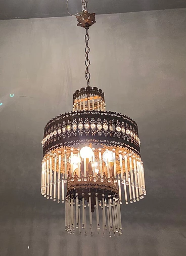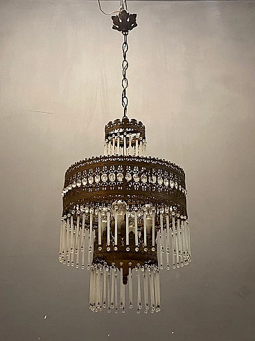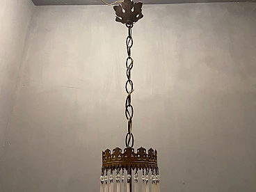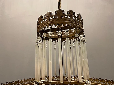 Art Nouveau Murano glass chandelier. Height without chain and canopy 53 cm. Height with chain and canopy 93 cm. It has 4 lights. Requires E14 bulbs. New wiring installed compatible with the UK and Europe. Shipping in a wooden crate for safe arrival.