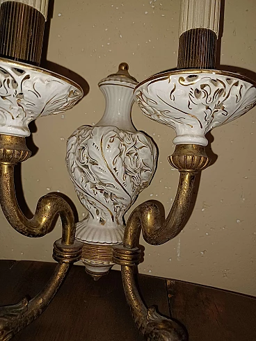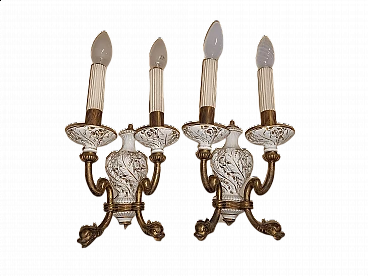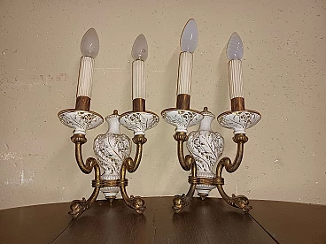 Pair of bronze and glazed ceramic wall lamps, 1950s