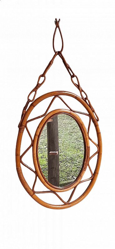 Mirror in cane and wicker, 1950s period, in excellent condition, attributable to Franco Albini, Bonacina. Frame measures h.62x2x48cm. with chain h.92cm. Mirror measures h.38x26cm.