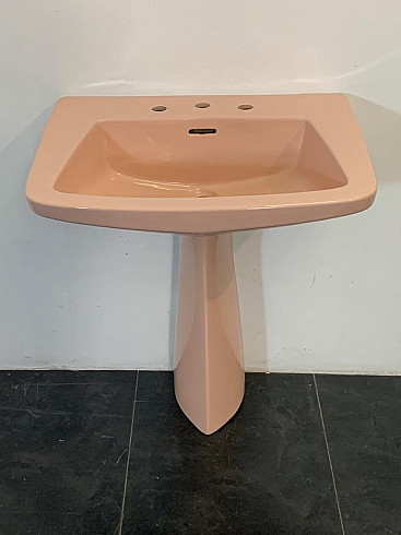 By removing the architectural clothing to the appliances, the column that pretends to hold the sink cup, relief collars that belong the profiles, you arrive in the true form, says Ponti in '55' but it had already done it in '36, with The deva devices for Montecatini. Here the sink column is a simple crankcase that hides, does not hold. The smooth washbasin basin, without relief, is trapezoidal a shape that favors the gesture of the arms in the washing.