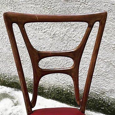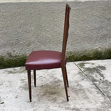 6 Dining chairs in walnut and leatherette with brass tips, 50s
