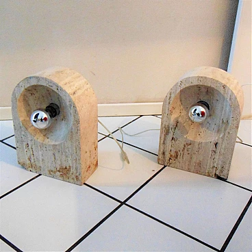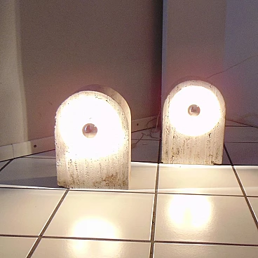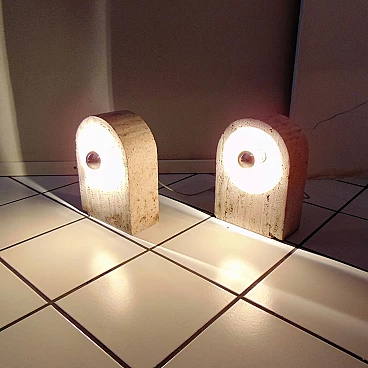 Sormani Nucleo Set of 2 Table Lamps in Travertine by G. Cesari, 1970s, Italy
