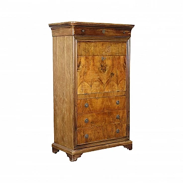 Charles X secrétaire converted into a record player cabinet; veneered in walnut burl.