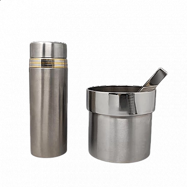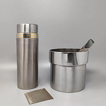 24K Gold and stainless steel cocktail shaker with ice bucket by Piazza, 1970s