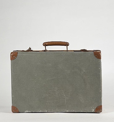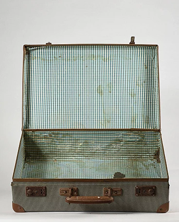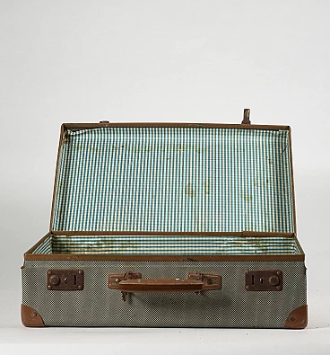 Checkered suitcase in rigid cardboard and leatherette, 50s