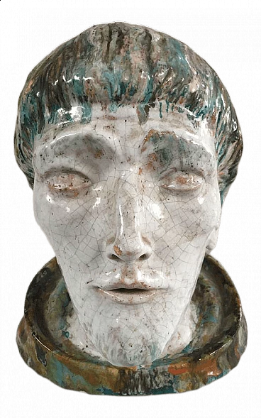 Sculpture depicting St Francis of Assisi in Roggiani glazed ceramic with craquelé effect. The Italian ceramic manufacturer Roggiani was one of the most important in Italy in the period from 1930 to 1950. Its products bear witness to the great quality of Italian design.