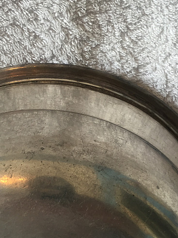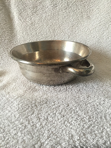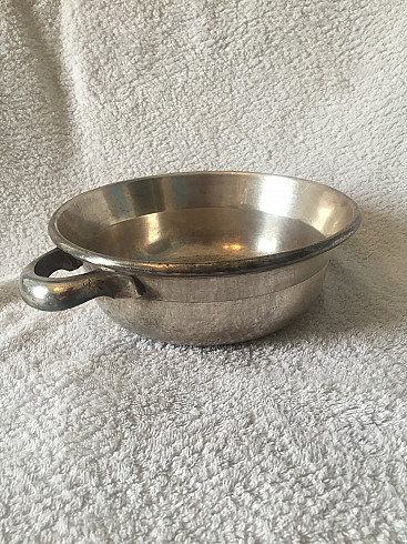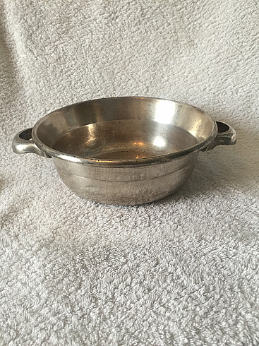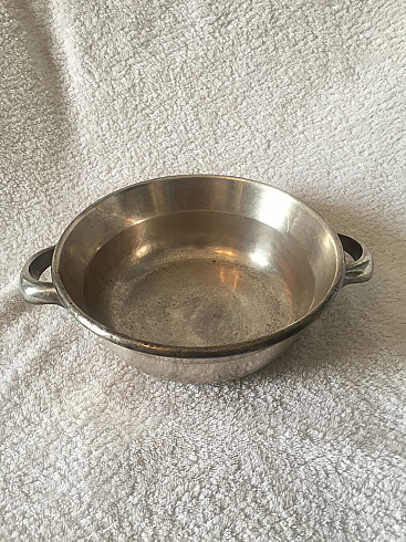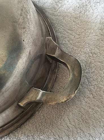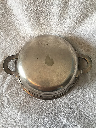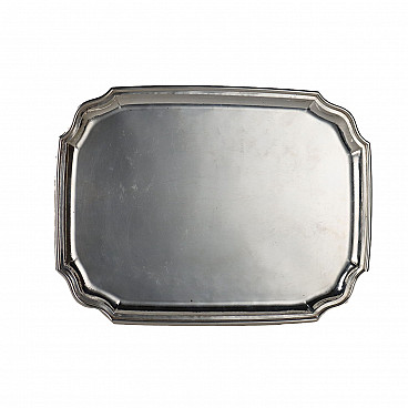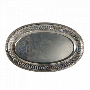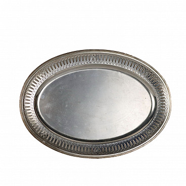 Original silver-plated nickel service plate designed by Gio Ponti for Calderoni Brothers. Dishes used on the tables of ships or in large hotels, classic Ponti design. Marked at the base with No. 6, to indicate the capacity of the contents, stamped "Fratelli Calderoni" Milan.