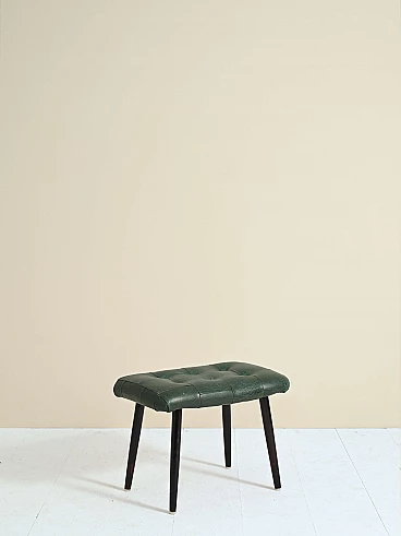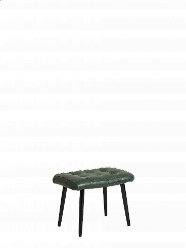 Original Scandinavian green leather pouf. The legs are made of black painted wood. An original piece of iconic Scandinavian design.