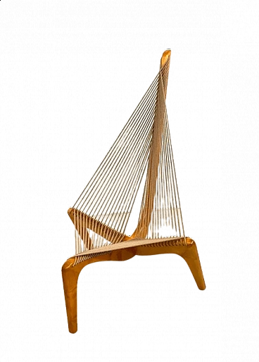 Rope harp chair with ash wood frame designed by Jorgen Hovelskov in 1963.